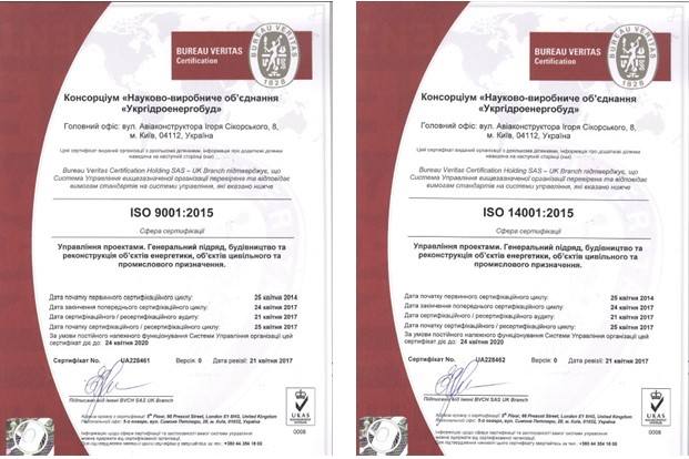 16 апреля 2018 г. «Бюро Веритас Сертификейшн Украина» провело в Консорциуме «НПО «Укргидроэнергобуд» надзорный аудит, согласно стандартам и нормам Международной организации по стандартизации (ISO). Результаты аудита подтвердили полное соответствие интегрированной системы менеджмента качества и экологического менеджмента, которая действует в Консорциуме, требованиям международных стандартов ISO 9001: 2015 «Системы менеджмента качества» и ISO 14001: 2015 «Системы экологического менеджмента».